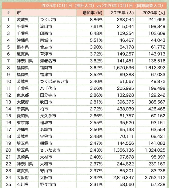 全国的にみても「人口が増えている都市」として目立つ存在になりつつあります。