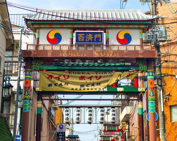 有名な焼肉店や韓国グルメ・雑貨などを楽しむことができる活気あるエリアです。
