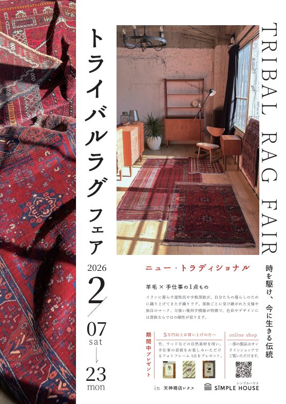 部族ならではの個性が宿る、今の暮らしに息づく一点物のラグが、simple houseに集まります。