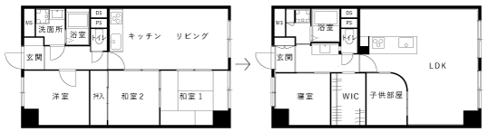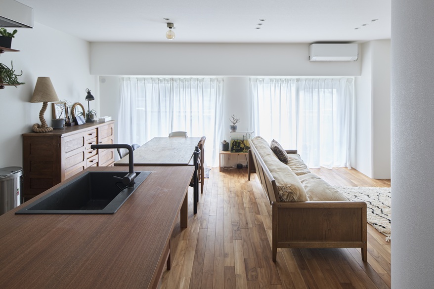 お子さんの小学校区を変えないよう、リノベーション用の物件を探されていたT様。気に入っていたのは公園に面した、眺望の良いマンション。産休に入ったタイミングで住環境を整えたいと考えていた奥さまは、物件情報をこまめにチェックしていました。空きが出て購入しようとしたものの、タッチの差で購入できず。辛抱強く、チャンスを待ちます。ようやく念願の物件が出た折に、速やかに購入、リノベーション工事へと進みました。